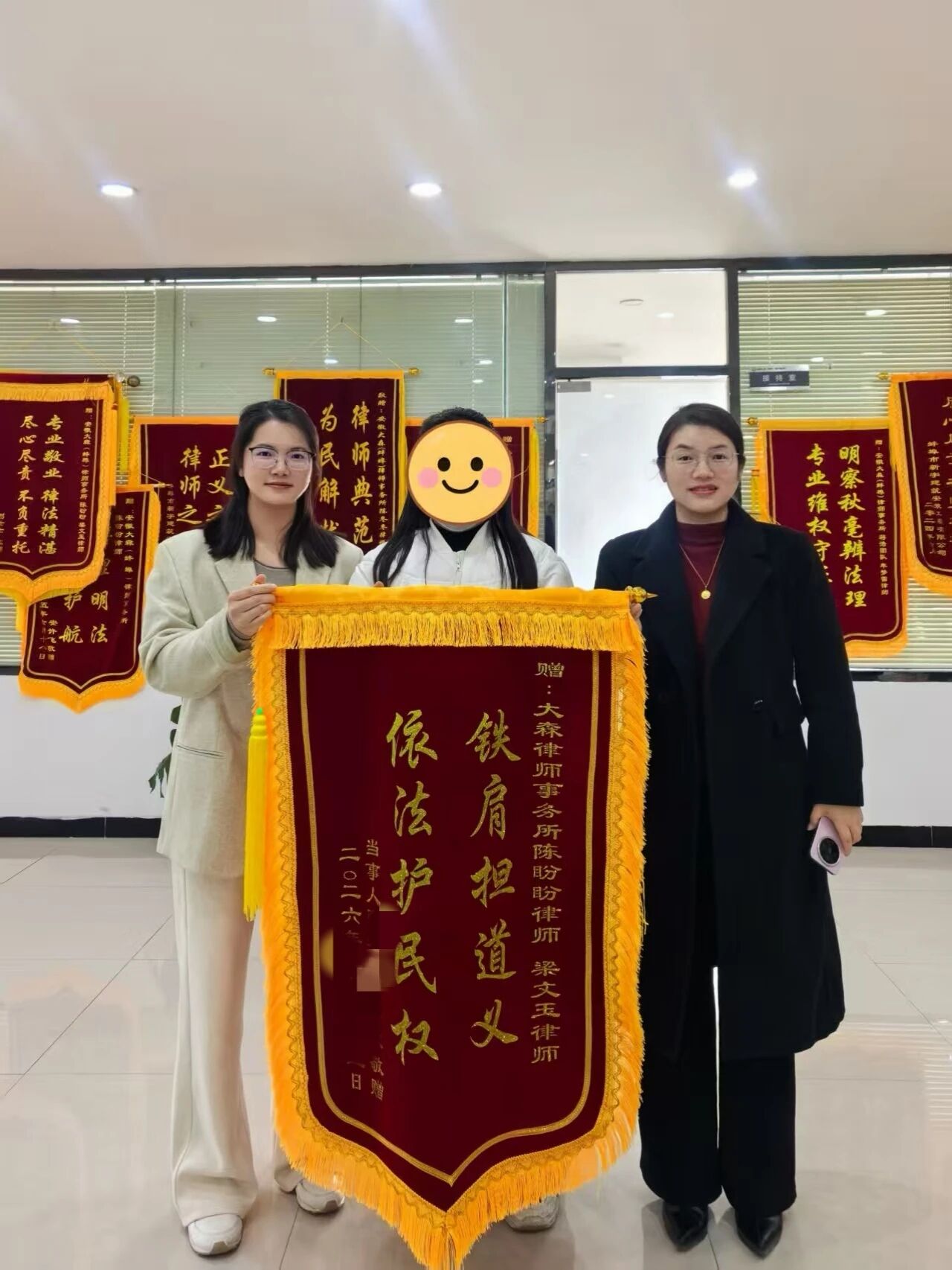 2025年3月,一面写着“铁肩担道义,依法护民权”的锦旗被送到陈盼盼、梁文玉律师手中。这是一起为未成年人成功维权的医疗损害责任纠纷案。
